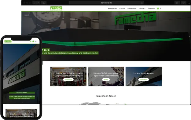 Für die Famecha GmbH, einen spezialisierten Automobilzulieferer, haben wir einen modernen, mehrsprachigen Webauftritt geschaffen, der das Unternehmen für potenzielle Bewerber ins rechte Licht rückt und den Bewerbungsprozess reibungslos gestaltet.