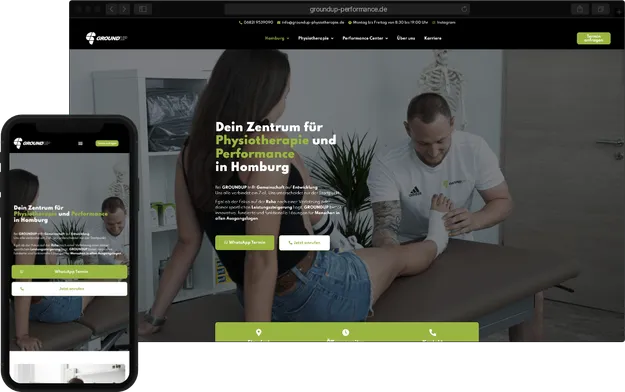Mit einem kompletten Redesign und einer optimierten Online-Terminanfrage haben wir GROUNDUP geholfen, ihre innovative Physiotherapie-Praxis in Homburg und Neunkirchen besser zugänglich zu machen und die Terminbuchungen zu steigern.
